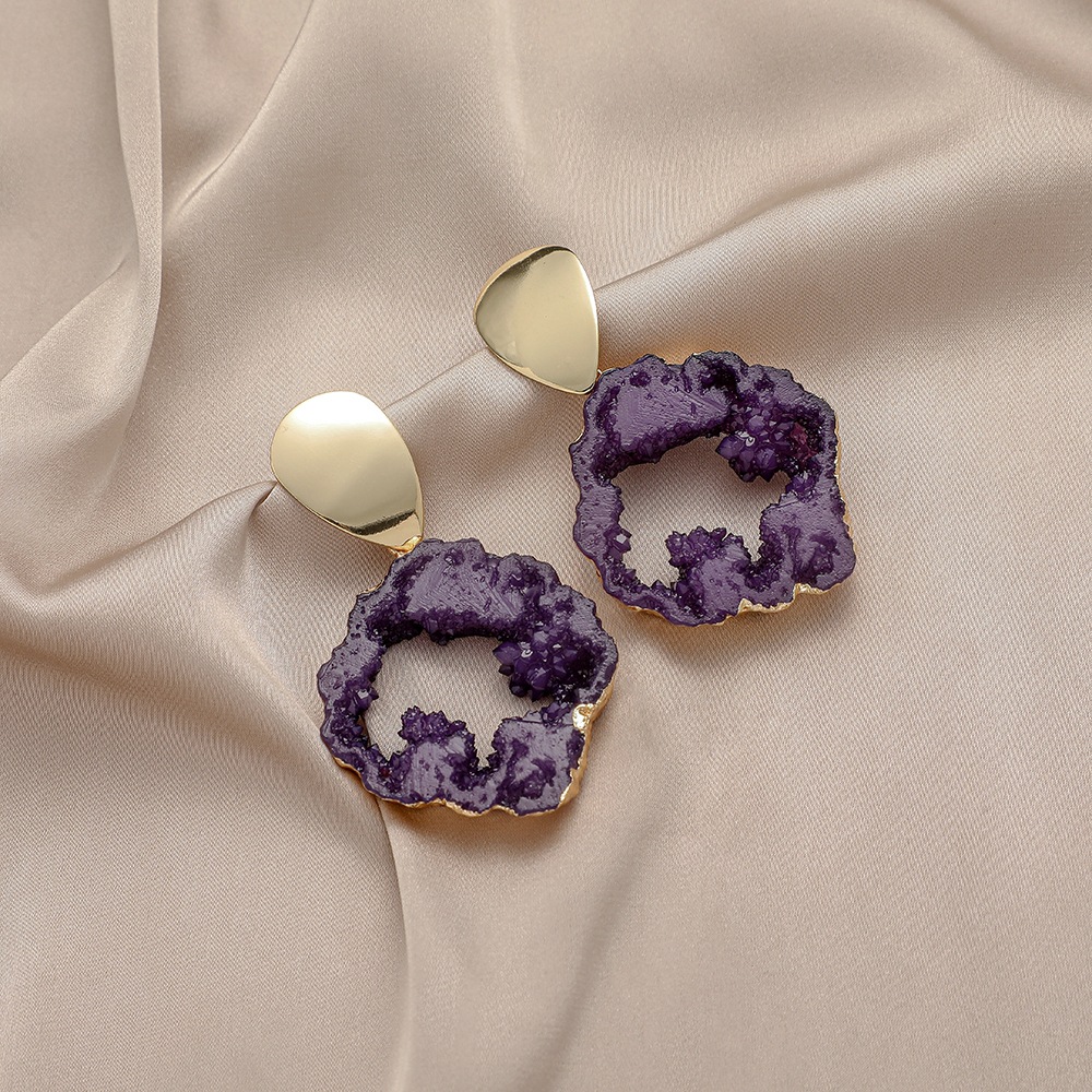 Fashionable Resin Irregular Shaped Amethyst Rough Stone Earrings