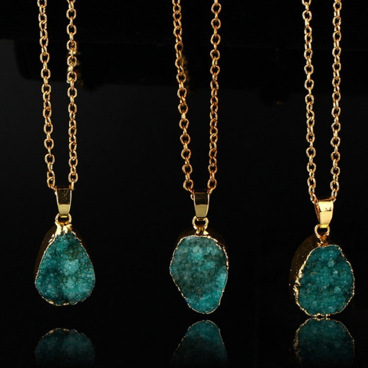 Ladies Round Irregular Water Droplets Natural Stone Rough Stone Pendant Necklace