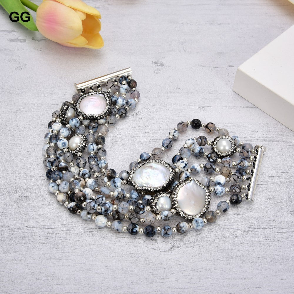 Gem information: freshwater cultured pearl, round White Pearl, round gray agate, good quality, high luster!